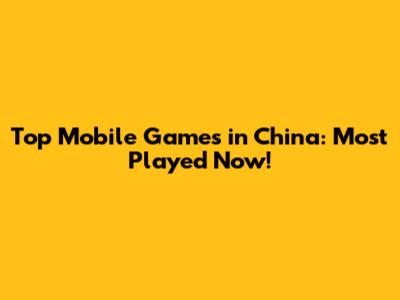 Top Mobile Games In China: Most Played Now!
