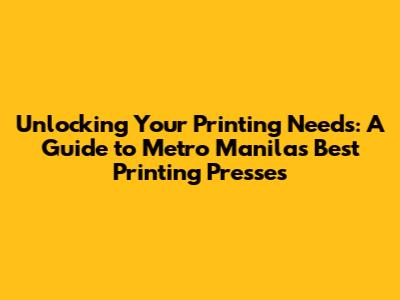 Hey guys, let's talk about something super important for any business, event, or even just a personal project: printing. Whether you need eye-catching flyers, professional business cards, vibrant posters, or even custom packaging, finding the right printing press in Metro Manila is key. It's not just about getting ink on paper; it's about making a statement, conveying your message effectively, and leaving a lasting impression. The sheer volume of options in a bustling metropolis like Manila can be overwhelming, so I've put together this guide to help you navigate the landscape and find the printing partners that truly deliver quality, speed, and value. We'll dive deep into what makes a printing press stand out, from their technological capabilities and customer service to their pricing and turnaround times. Think of this as your ultimate cheat sheet to ensure your next print job is a resounding success. So, buckle up, grab a coffee, and let's explore the vibrant world of printing in the heart of the Philippines!