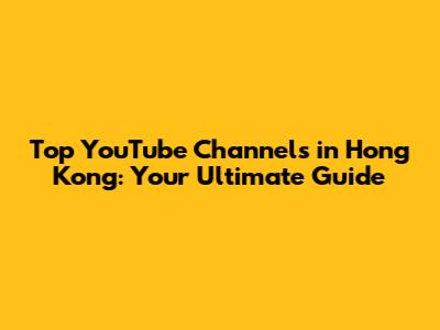 Top YouTube Channels In Hong Kong: Your Ultimate Guide