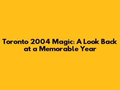 Toronto 2004 Magic: A Look Back At A Memorable Year
