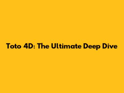 Toto 4D: The Ultimate Deep Dive