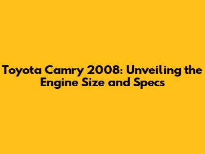 Toyota Camry 2008: CC Engine Size & Specs
