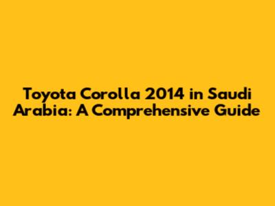 Toyota Corolla 2014 In Saudi Arabia: A Comprehensive Guide