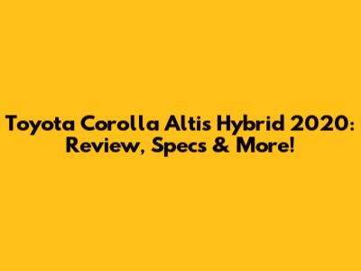 Toyota Corolla Altis Hybrid 2020: Review, Specs & More!