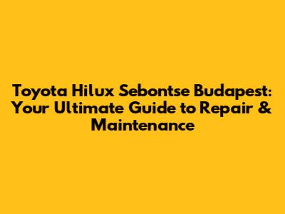 Toyota Hilux Sebontse Budapest: Your Guide To Repair & Maintenance