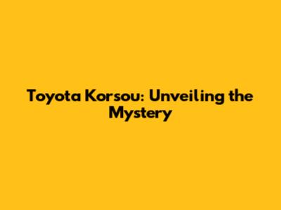 Toyota Korsou: Unveiling The Mystery