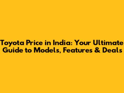 Toyota Price In India: Models, Features & Deals