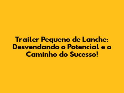 Trailer Pequeno De Lanche: Seu Guia Completo Para O Sucesso!