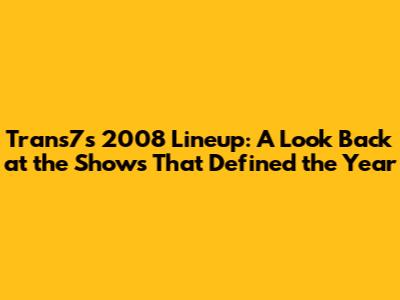 Trans7's 2008 Lineup: A Look Back At The Shows That Defined The Year