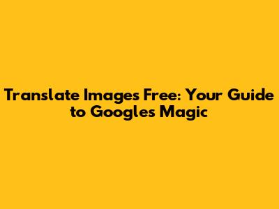 Translate Images Free: Your Guide To Google's Magic