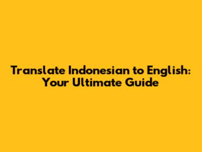 Translate Indonesian To English: Your Ultimate Guide