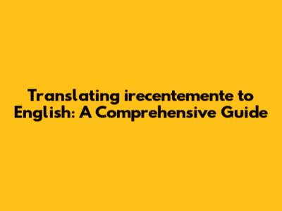 Hey guys! Ever stumbled upon a word in another language and thought, "What in the world does that mean?" Well, today we're tackling one of those words: "irecentemente." It's an Italian word, and we're going to break down exactly how to translate it into English, along with all the little nuances that can make a big difference. So, buckle up, and let's get started on this linguistic adventure!