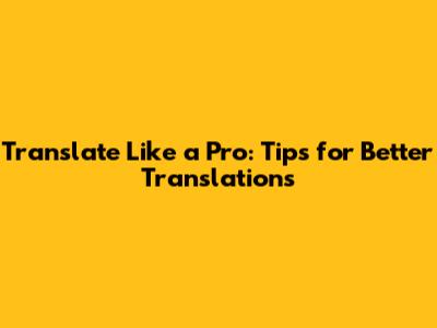 Translate Like A Pro: Tips For Better Translations