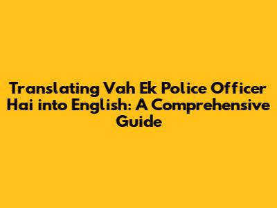 Translating Vah Ek Police Officer Hai Into English: A Comprehensive Guide
