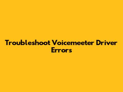 Troubleshoot Voicemeeter Driver Errors