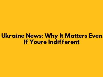 Ukraine News: Why It Matters Even If You're Indifferent