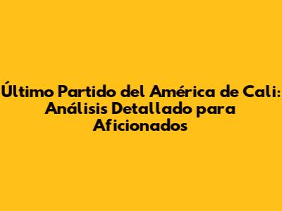 Último Partido Del América De Cali: Todo Lo Que Debes Saber