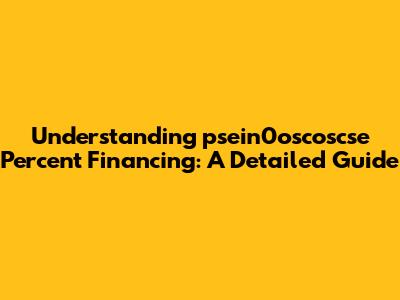 Understanding Psein0oscoscse Percent Financing: A Detailed Guide