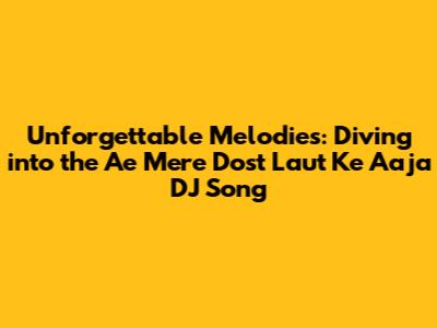 Unforgettable Melodies: Diving Into The 'Ae Mere Dost Laut Ke Aaja' DJ Song