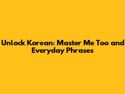 Unlock Korean: Master 'Me Too' And Everyday Phrases
