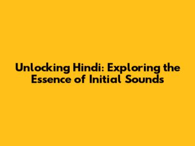 Unlocking Hindi: Exploring The Essence Of Initial Sounds