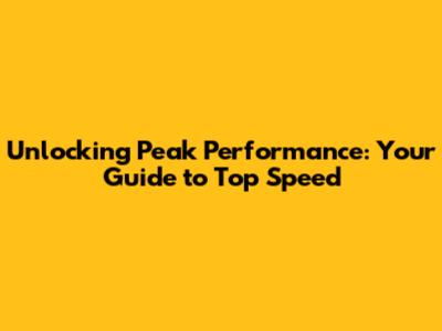 Unlocking Peak Performance: Your Guide To Top Speed