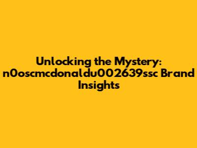 Unlocking The Mystery: N0oscmcdonaldu002639ssc Brand Insights