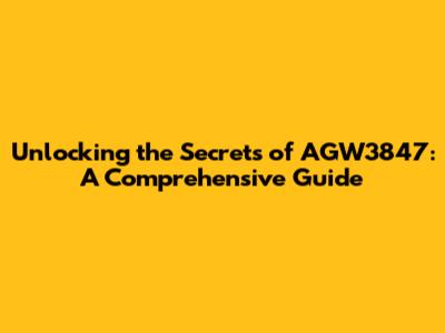 Unlocking The Secrets Of AGW3847: A Comprehensive Guide