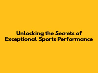 Unlocking The Secrets Of Exceptional Sports Performance
