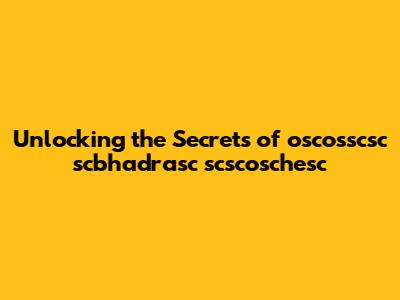 Unlocking The Secrets Of Oscosscsc Scbhadrasc Scscoschesc