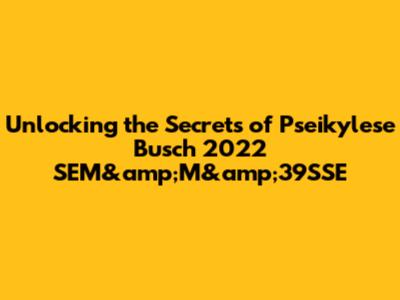 Unlocking The Secrets Of Pseikylese Busch 2022 SEM&M&39SSE