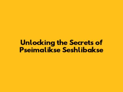 Unlocking The Secrets Of Pseimalikse Seshlibakse