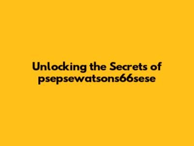 Unlocking The Secrets Of Psepsewatsons66sese
