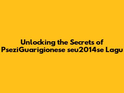 Unraveling the Mystery: The Significance of PseziGuarigionese seu2014se Lagu