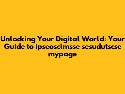 Unlocking Your Digital World: Your Guide To Ipseosclmsse Sesudutscse Mypage