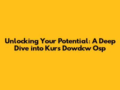 Unlocking Your Potential: A Deep Dive Into Kurs Dowdcw Osp