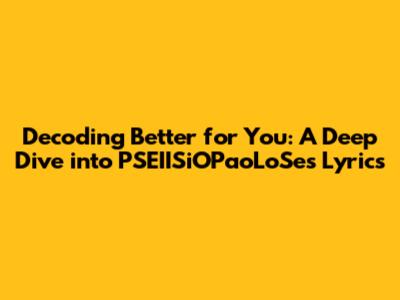 Unpacking The Lyrics: 'Better For You' By PSEIISiOPaoLoSe