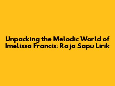 Unpacking The Melodic World Of Imelissa Francis: Raja Sapu Lirik