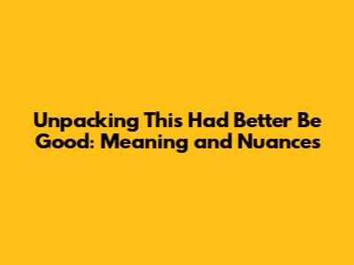 Unpacking 'This Had Better Be Good': Meaning And Nuances