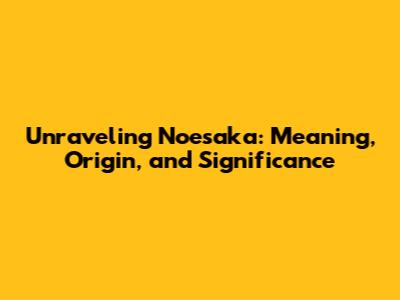 Unraveling Noesaka: Meaning, Origin, And Significance