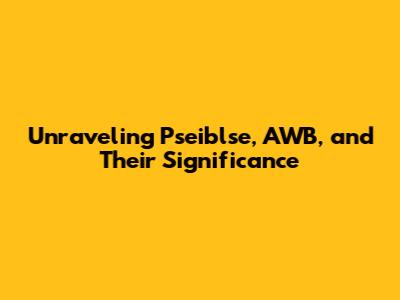 Unraveling Pseiblse, AWB, And Their Significance