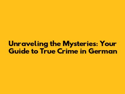 Unraveling The Mysteries: Your Guide To True Crime In German