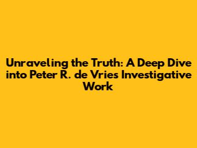Unraveling The Truth: A Deep Dive Into Peter R. De Vries' Investigative Work