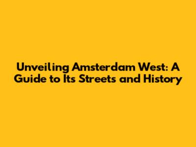 Unveiling Amsterdam West: A Guide To Its Streets And History