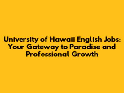 Unveiling English Jobs At The University Of Hawaii