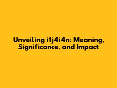 Unveiling I1j4i4n: Meaning, Significance, And Impact