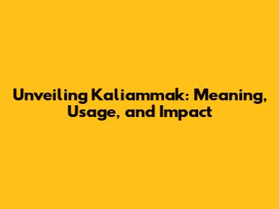 Unveiling 'Kaliammak': Meaning, Usage, And Impact