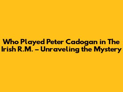 Hey everyone! Ever found yourselves captivated by the charm and wit of The Irish R.M.? I know I have! And if you're anything like me, you've probably wondered about all the amazing actors who brought those characters to life. Today, we're diving deep into one of the most memorable characters: Peter Cadogan. Specifically, we're going to uncover the amazing actor behind him. So, buckle up, because we're about to solve the mystery of who played Peter Cadogan! It is going to be a fun ride, and I'm sure you will find this article very informative.