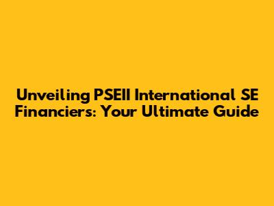 Unveiling PSEII International SE Financiers: Your Guide