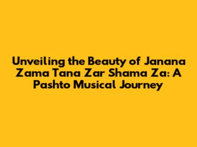 Unveiling The Beauty Of 'Janana Zama Tana Zar Shama Za': A Pashto Musical Journey